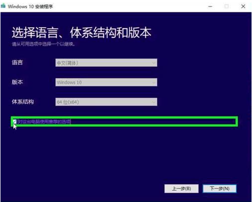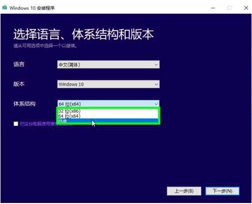 6、取消“對這臺電腦使用推薦的選項”,點擊體系結構,在下拉菜單中選擇第三項“兩者”。