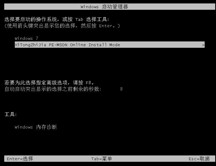 3、電腦重啟后進入了開機選項界面,選擇第二項xitongzhijia-pe系統進入。