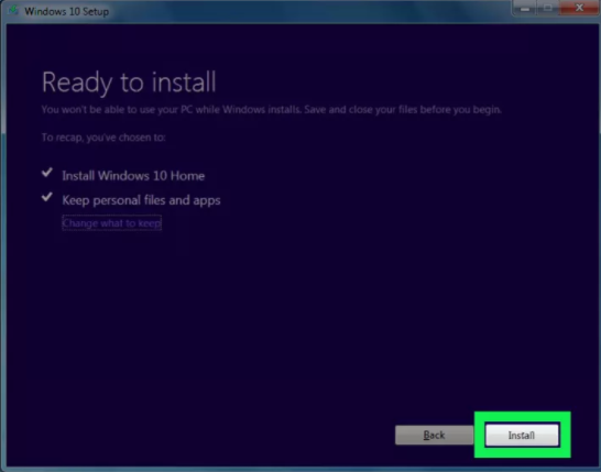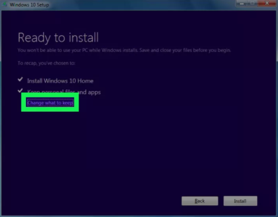 【Keep personal files and apps】:保留與 Windows 10 兼容的所有個人文件和應用程序。