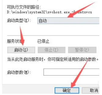 4、點擊【啟動】,并將“啟動類型”設置為【自動】,點擊【確定】即可。