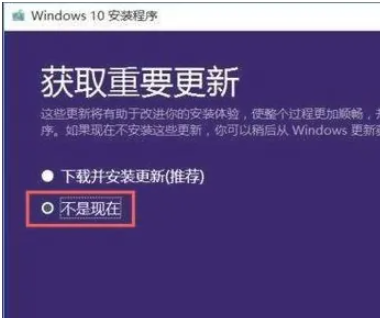 6、在升級過程中,選擇【不是現在】,不要選擇【下載并安裝更新】,避免任何自動安裝驅動可能導致的兼容性問題。