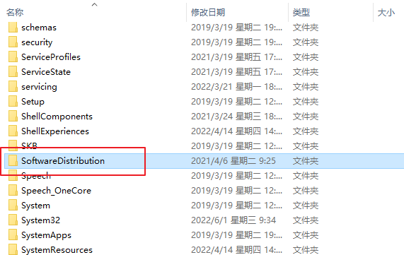 4、重命名c盤路徑:C:\Windows\SoftwareDistribution文件夾為SDfolder。