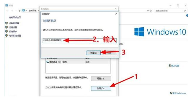 3、隨后點擊“創建”,輸入還原點描述后,點擊“創建”。