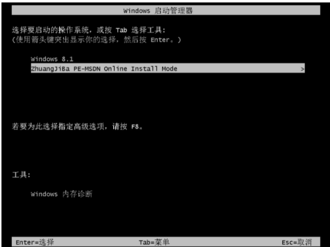 4、當電腦進入windows啟動管理器頁面,選擇第二個進入電腦的pe系統。