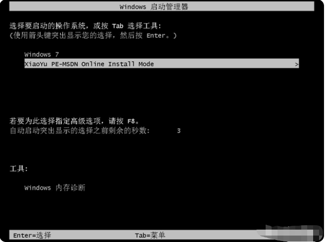 4、電腦重啟后,我們會進入這個頁面,選擇帶PE的系統(10秒后也會自動進入)。