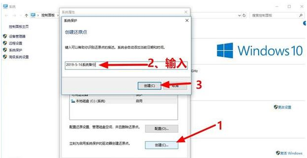 3、點擊“創建”,輸入還原點描述后,點擊“創建”。