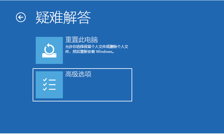 1、首先強制長按電源鍵關機以及開機。重復此步驟三次,耐心等待自動修復完成,選擇高級選項進入。