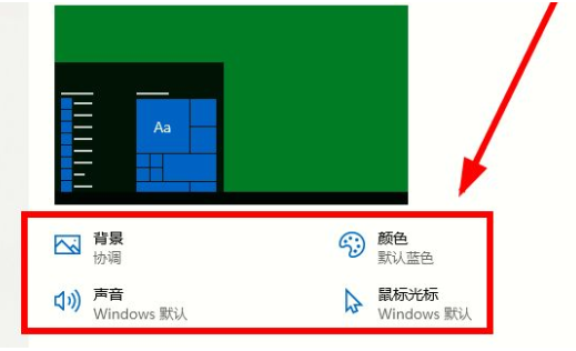 5、我們可以通過點擊這里的【背景】【顏色】【聲音】【鼠標光標】選項進行當前主題的再設置哦。