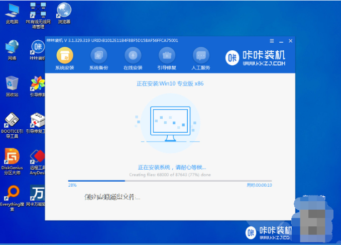 5、此時咔咔裝機工具會自動打開安裝win10系統。