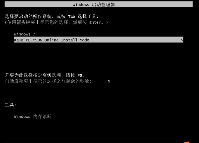 4、來到啟動頁面選擇kaka pe-msdn項進入pe系統內。