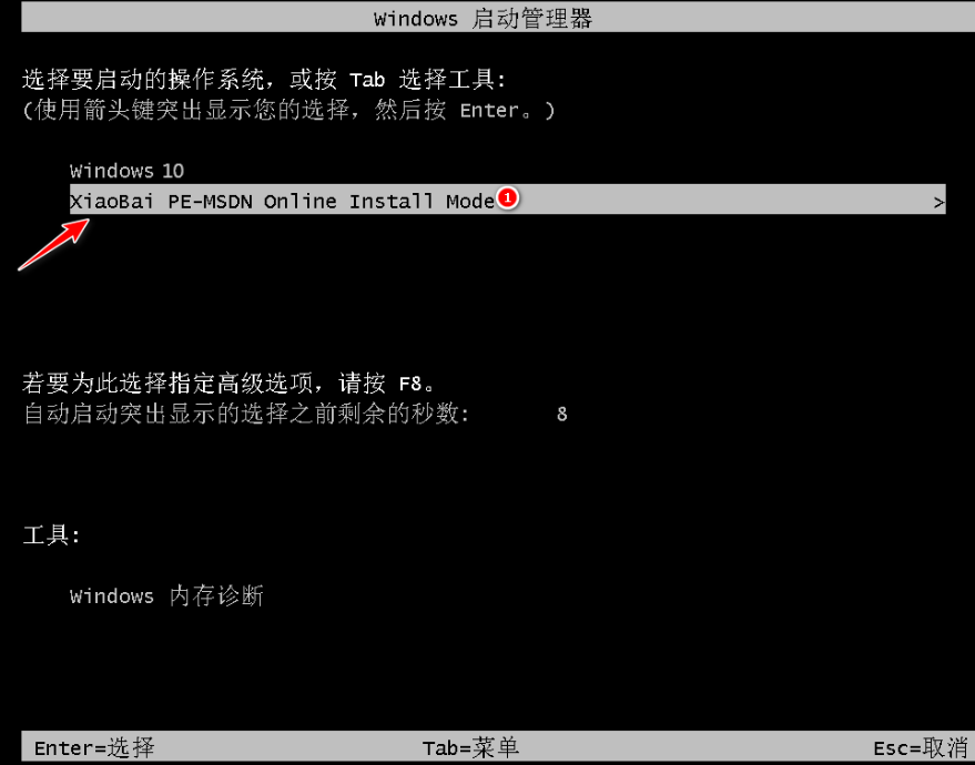 4、電腦重啟后選擇第二項“XiaoBai PE-MSDNONline Install Mode”。