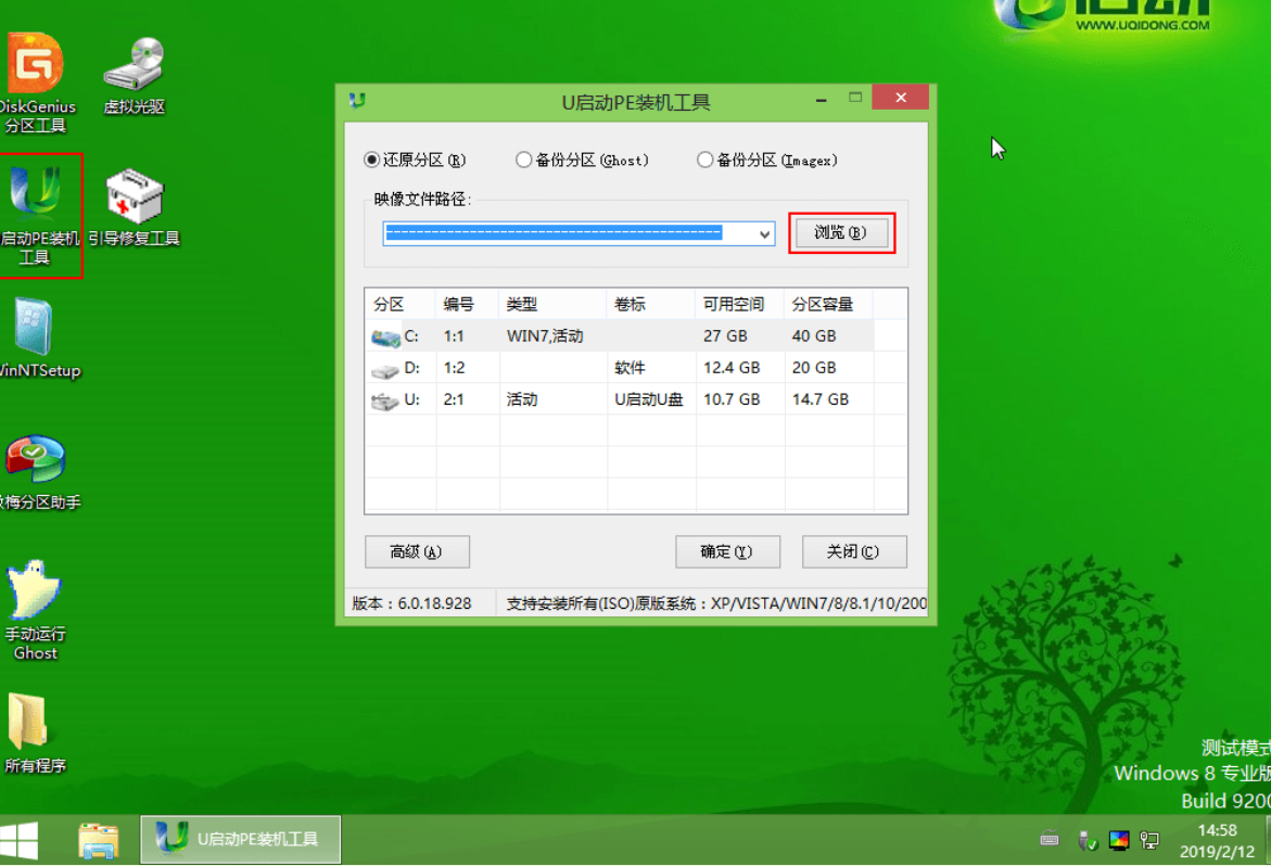 2、登錄pe系統后,工具主窗口中點擊“瀏覽”按鈕。