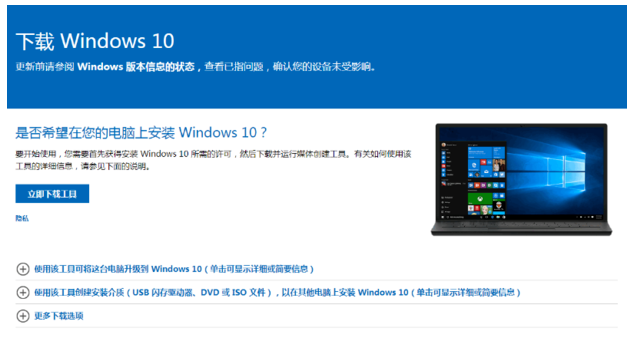 1、訪問微軟官方網站下載windows10工具進行在線升級。參考下圖: