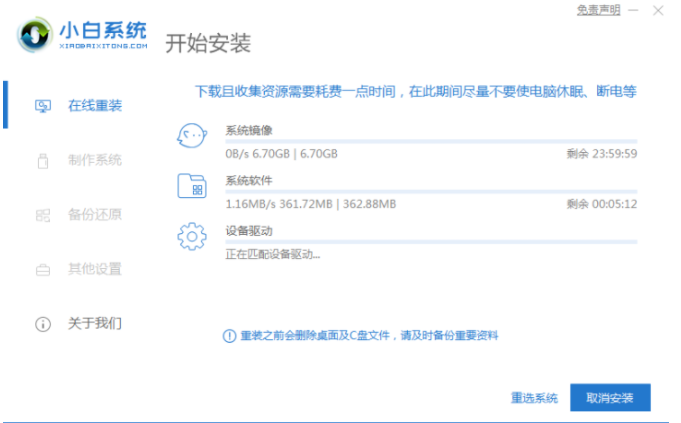 1、打開小白一鍵重裝系統軟件,選擇win10系統。