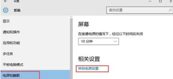 2.然后在系統設置界面的左側選擇“電源和睡眠”,然后在界面的右側單擊“其他電源選項”以進入下一步。
