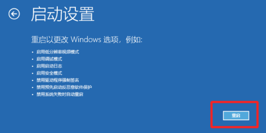 3、選擇高級選項,點擊啟動設置,點擊重啟。