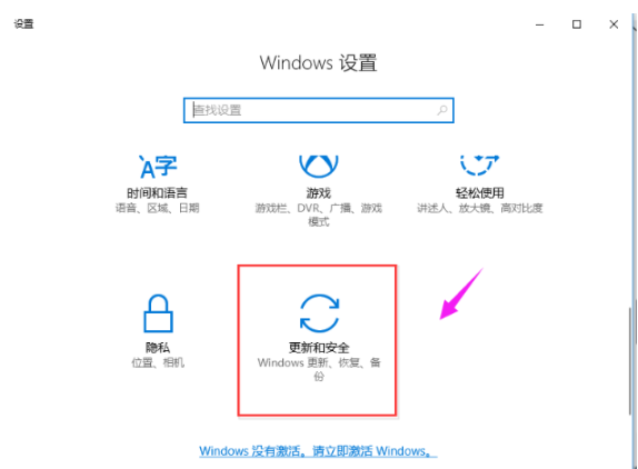 2.鼠標點擊“更新和安全”。