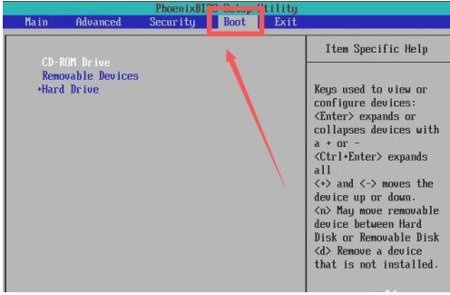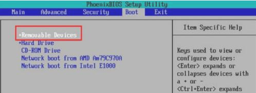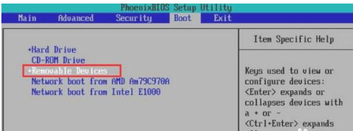 3、按住“+”鍵讓選項向上移動,將removeble device移動至最上面。設置完成按下F10,在彈窗中選擇yes,回車確定。