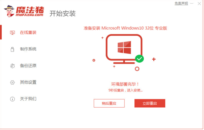 3、提示部署環境完成之后,點擊立即重啟電腦。