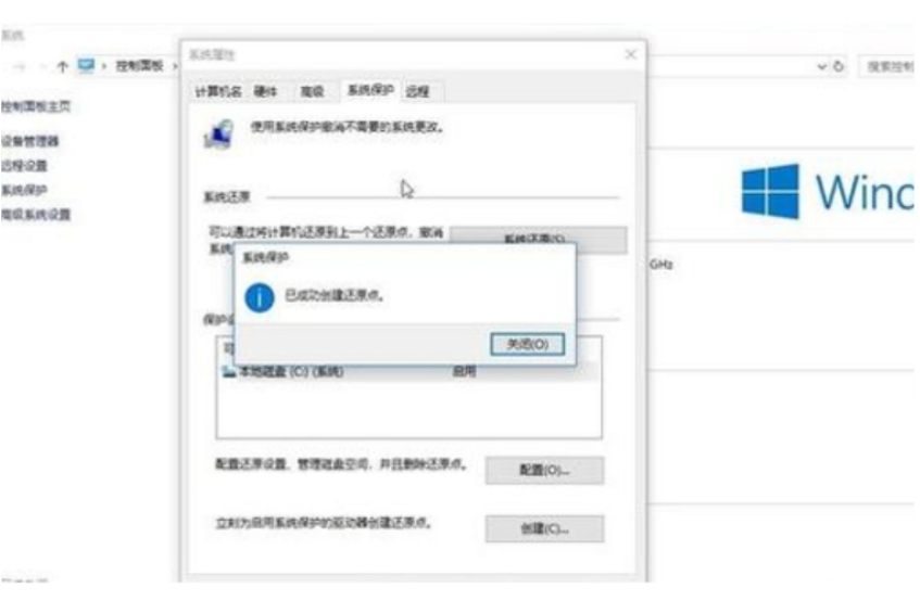 4、然后可以看到創建還原點成功了。