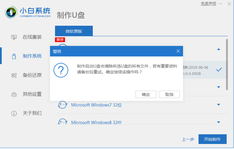 1、進入小白工具,插入U盤,制作U盤啟動盤;