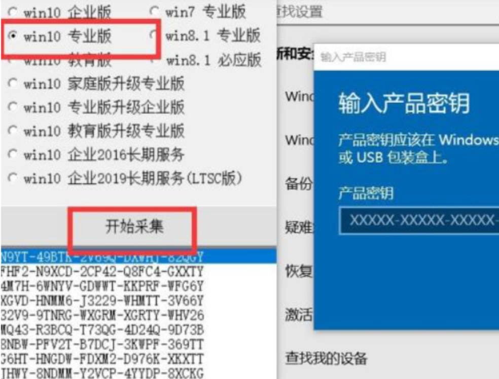 4、然后下載雙擊打開密鑰采集器到電腦上,選擇專業版點擊開始采集。