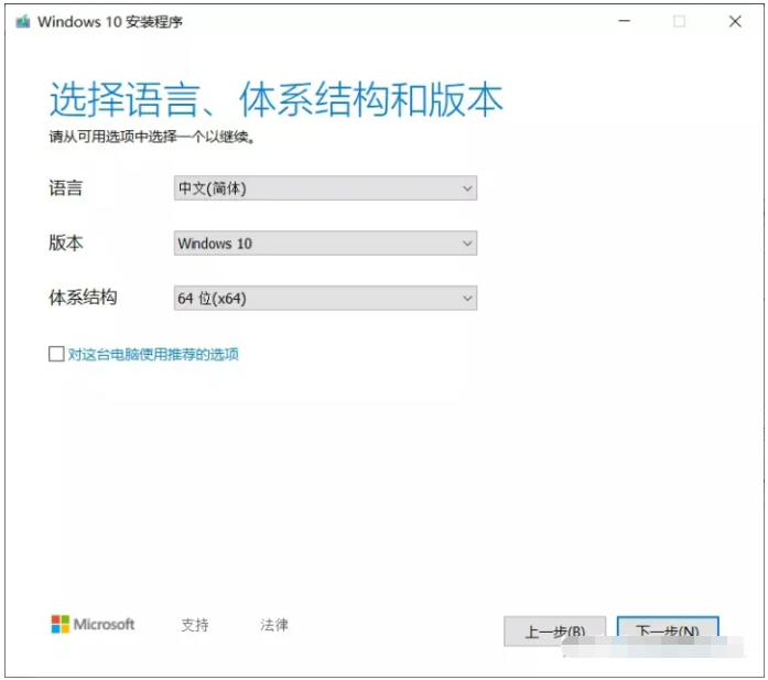3、選擇想要下載的鏡像語言,版本以及體系結構,點擊下一步。