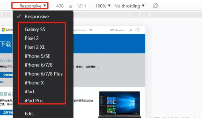 4、在頁面左側選擇任何一個移動設備型號,然后再刷新頁面。