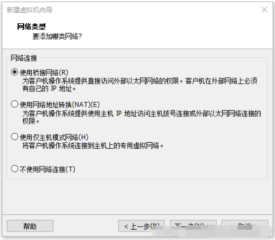 注意事項:一臺電腦里虛擬機只能有一個使用NAT,所以選用橋接聯網。要是沒有的話,此win10虛擬機也可以使用NAT。