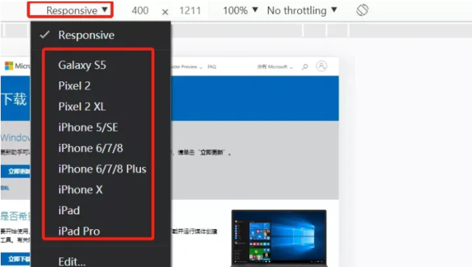 3、左側選擇任何一個移動設備型號,再刷新頁面。
