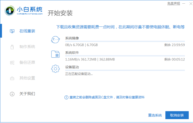 1、進入小白一鍵重裝系統工具進行安裝win10系統;