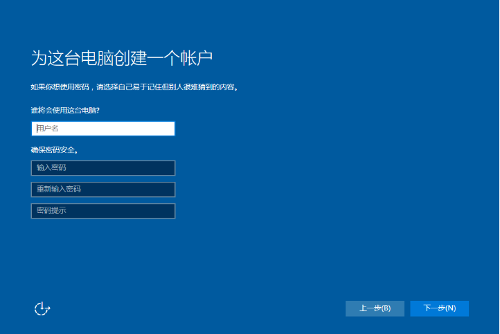11、設置用戶名和密碼,建議用戶名為英文,最好使用密碼,有效保障電腦數據安全。