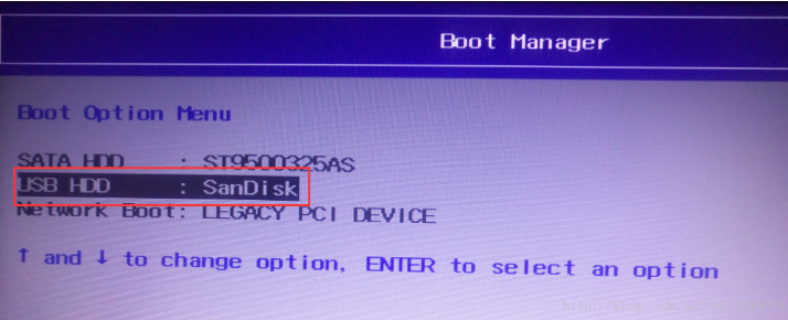 1、將制作好的U盤啟動盤插入需要安裝系統的電腦上,重啟電腦,在出現Lenovo界面時按F12進入bios(重啟時可以一直快速按著F12),使用“↓”選擇“USB HDD”,按“Enter”進入。