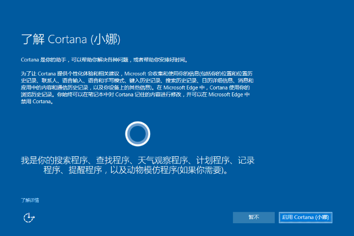 12、小娜語音助手可以開啟,可進行語音操作等,點擊“啟用Cortana(小娜)”。