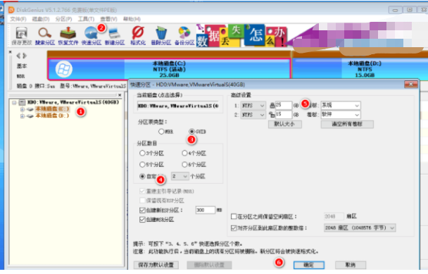 步驟3、需要注意的是,如果想要安裝 Windows XP、7 系統,建議選擇 MBR 分區,Bios 引導為 Legacy 也就是傳統引導。如果想安裝 Windows 8、10 系統,分區類型則選擇 GPT,Bios 引導為 UEFI 模式。分區數量自己根據硬盤大小選擇,一般 C 盤 60 GB 以上,其它參數則不需要調整直接分區即可。分區完成后再次打開小白裝機工具,然后應該能正常看到硬盤分區并可以安裝了。