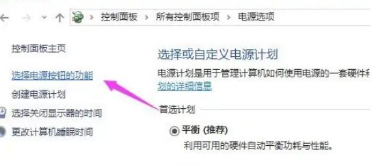 2.點擊【選擇電源按鈕的功能】。