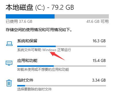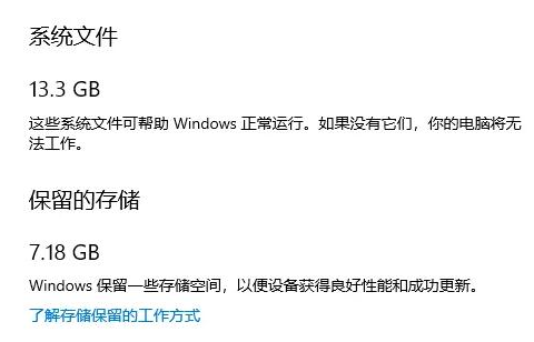 6、打開后即可查看系統文件的大小了。(這里系統文件和保留的存儲是必要的)