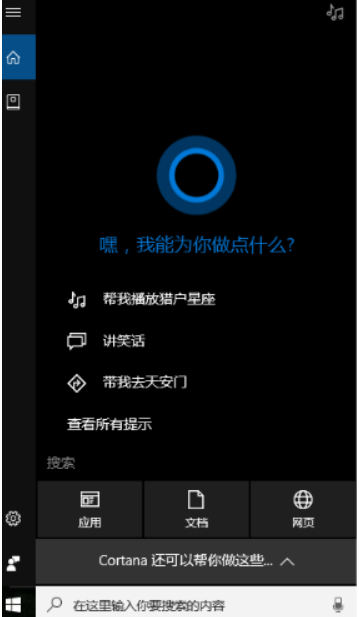 新增Cortana個人智能助手是win10系統中非常實用且重要的功能,小娜搜索框不僅提供本地已安裝應用軟件、文件、文件夾、系統設置的快速搜索,還可以通過搜索結構快速搜索網頁內容。除此之外,Cortana還可以設置生活提醒,包括天氣預報、車輛限行、日程安排、鬧鐘、定位導航功能,功能極其強大。