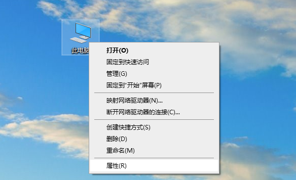 1、在Win10桌面的“此電腦(我的電腦)”圖標上鼠標右鍵,然后點擊進入“屬性”。