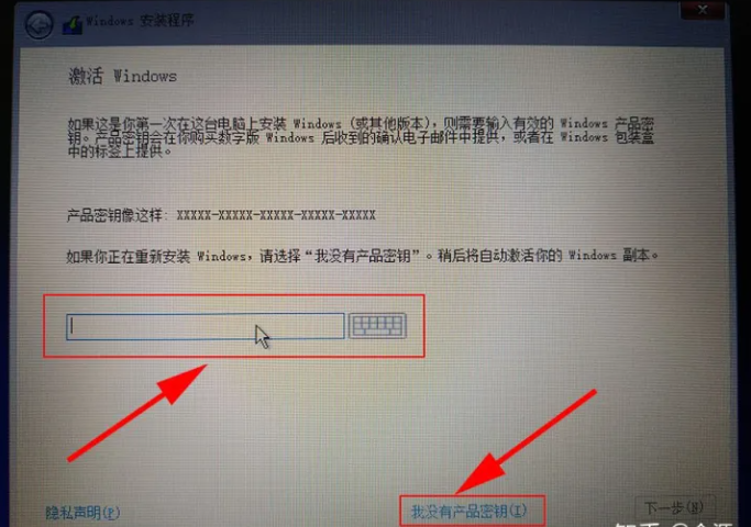 5、有密鑰的直接輸入,沒有就點擊“我沒有產品秘鑰”。