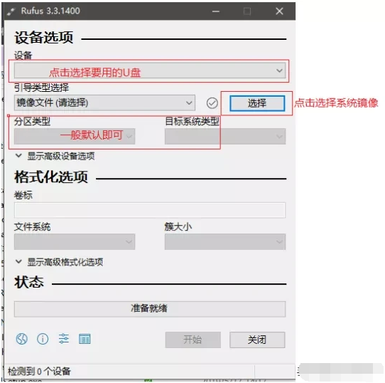 1、自行在電腦下載好rufus軟件后就可以直接雙擊打開,不需要安裝,按圖示選擇即可,一般分區類型新電腦用gpt,舊電腦用mbr,這個可以根據電腦型號進行調試。