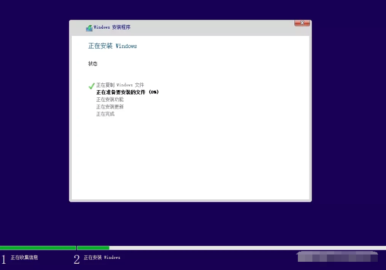 1、重啟后從U盤啟動進行系統安裝,win10系統會進入加載界面。