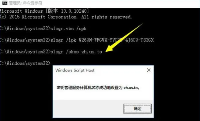 3、執行命令slmgr /skms zh.us.to,設置kms服務器。