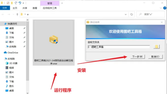 2、下載下來是一個自解壓的exe文件,運行并安裝它。