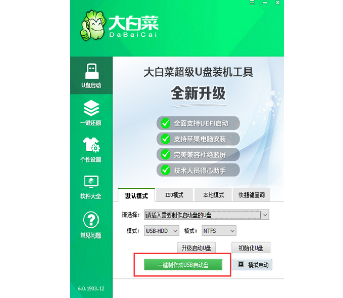 軟件版本:大白菜U盤啟動盤制作工具+8g的U盤