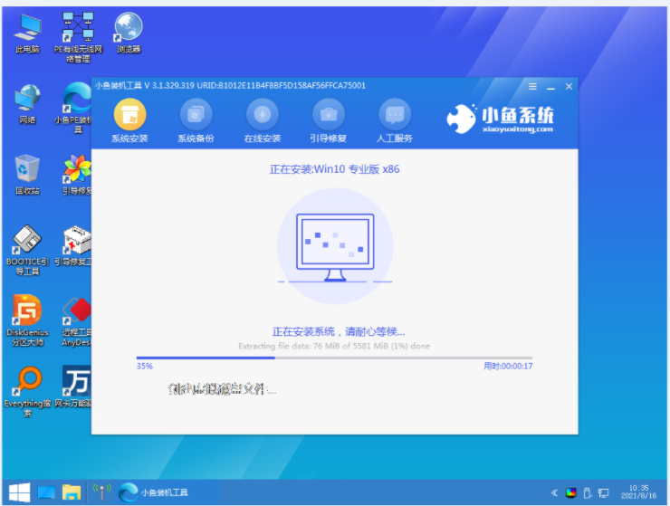 6、電腦進入pe系統中,軟件會自動安裝win10系統,耐心等待。