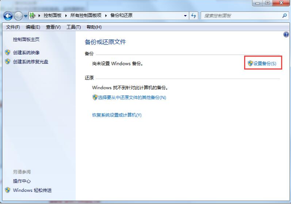 5.進入右側頁面之后,鼠標點擊設置備份。