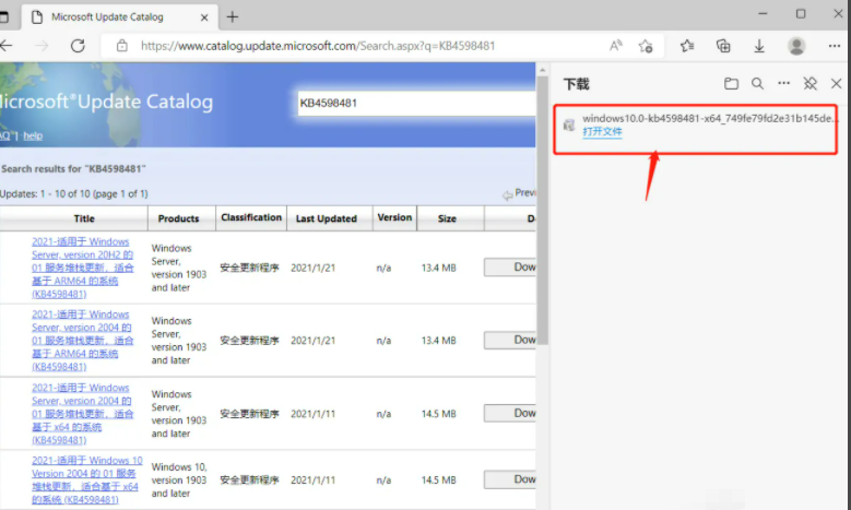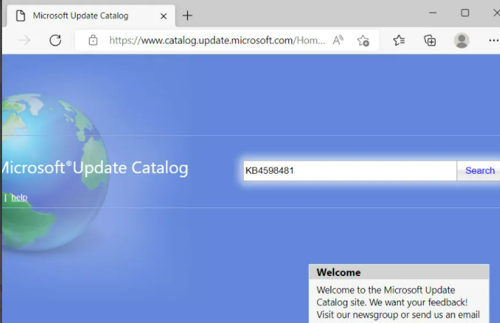 2、然后在搜索框輸入我們想要下載的補丁號或者補丁名稱,比如我下載這個:KB4598481,單擊Search按鈕。