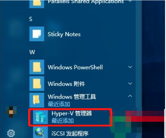 4、返回開始菜單進入,在windows管理工具中找到Hyper-V管理器,點擊打開。