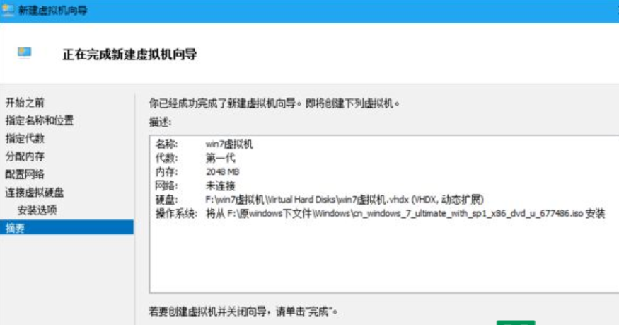 11、確認將要新建的win7虛擬機的相關配置,確認無誤后點擊完成。